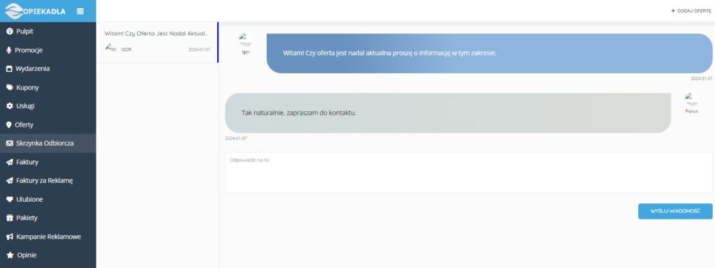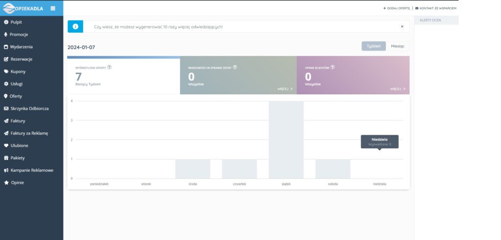 Po dodaniu oferty masz dostęp do panelu użytkownika i możesz korzystać z opcji serwisu. Pulpit umożliwia wyświetlanie informacji na tematy umieszczonych przez ciebie ofert.