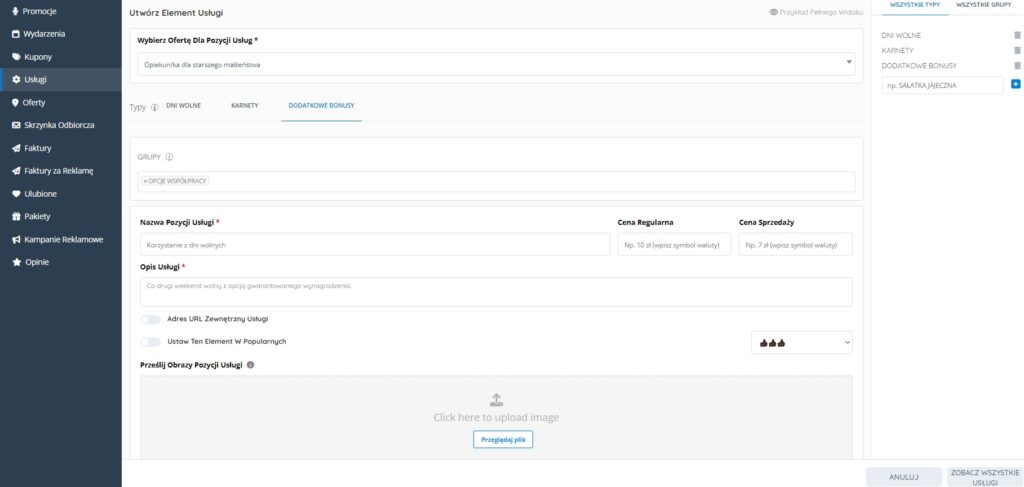 Dzięki opcji usługi możesz wzbogacić swoją ofertę o dodatkowe kryteria dla swojego ogłoszenia. Budujesz według swoich potrzeb opcje ofert, korzystając z intuicyjnych narzędzi serwisu.